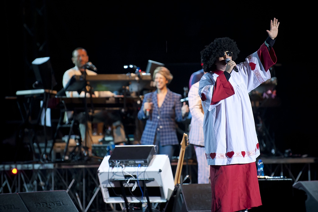 Le quattro esibizioni di Elio e le Storie Tese sono caratterizzate da travestimenti e make-up via via più estremi, nonchè, nella serata dedicata alla Storia del Festival, dalla presenza di Rocco Siffredi, che interpreta con loro la canzone “Un bacio piccolissimo”.
